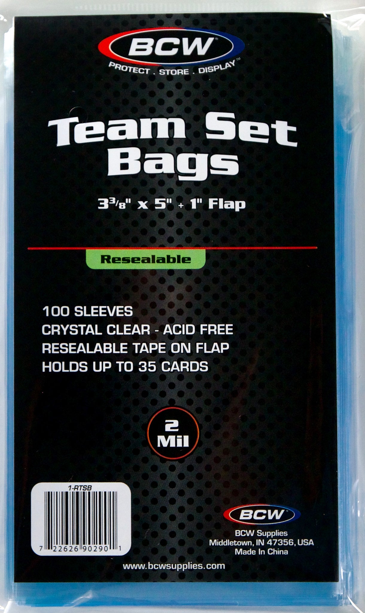 *BCW resealable team set bags designed for trading card storage, protection, and shipping.