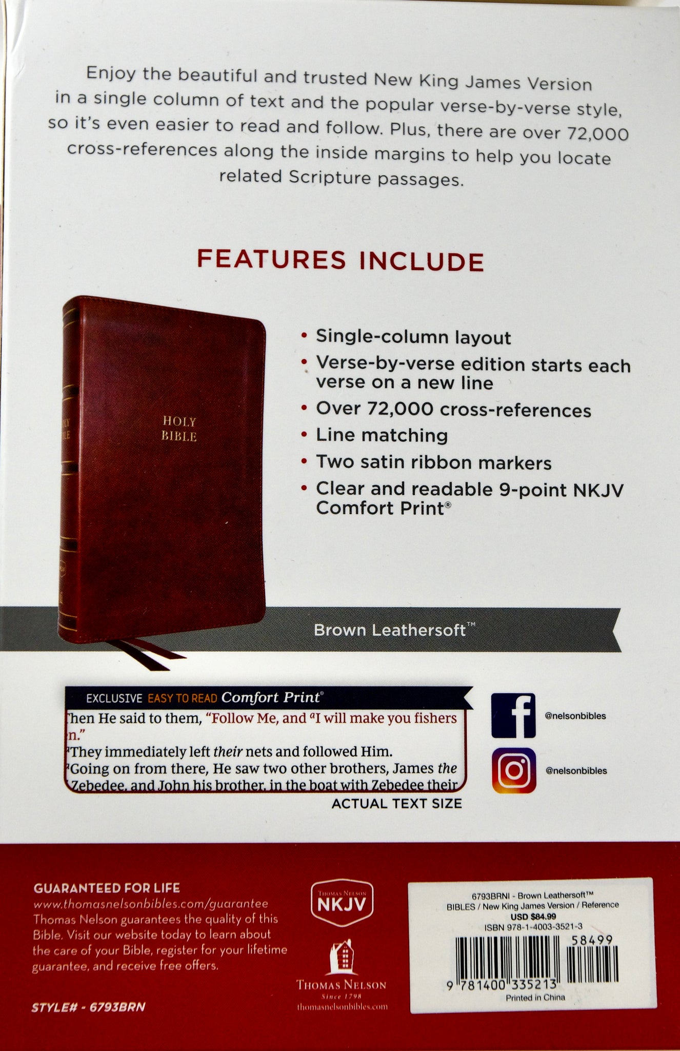 *NKJV Single-Column Reference Bible in brown Leathersoft with thumb indexing and a readable verse-by-verse layout.